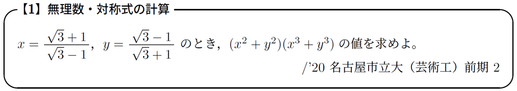 このような対称式計算は,次のような無理数の計算にも有効です。