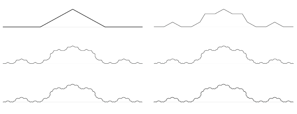 コッホ曲線の発表の翌年,この直線は自己相似であることがチェザロにより発見されました。そして,70年の時を経て,マンデルブロー(Benoit Mandelbrot,1924[ポーランド]-2010[米])のフラクタル理論へと昇華していきました。このような展開はワイエルシュトラスもコッホも想像していなかったことでしょう。